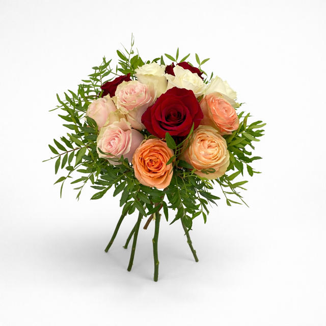 Este bouquet de rosas variadas combina diferentes tonalidades para crear una composición alegre, elegante y equilibrada. Cada diseño se realiza de forma artesanal en nuestra floristería de Avilés con rosas frescas y verdes naturales seleccionados a diario. Las rosas pueden presentarse en tonos rojos, rosas, blancos, melocotón u otros colores disponibles en el momento de la preparación, manteniendo siempre la armonía del conjunto y el estilo mostrado en la imagen. Es un regalo perfecto para: Cumpleaños, aniversarios, agradecimientos, amor y amistad, sorprender sin motivo Su mezcla de colores transmite alegría, cariño y naturalidad, convirtiéndolo en una opción versátil para cualquier ocasión. CARACTERÍSTICAS