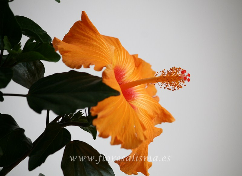 Hibiscus, que abarca más de 200 especies herbáceas, arbustivas y arbóreas originarias de las zonas tropicales y subtropicales del planeta, dentro de la familia de las Malváceas.El Hibiscus rosa-sinensis proviene del sudeste de Asia; de hecho es la flor nacional de Malaisia, donde se llama bunga raya.